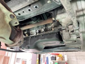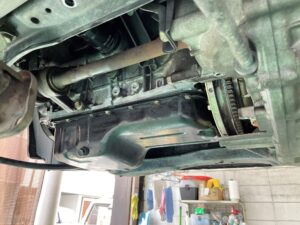 下からオイルパン部を確認すると🧐オイルが滲み漏れています